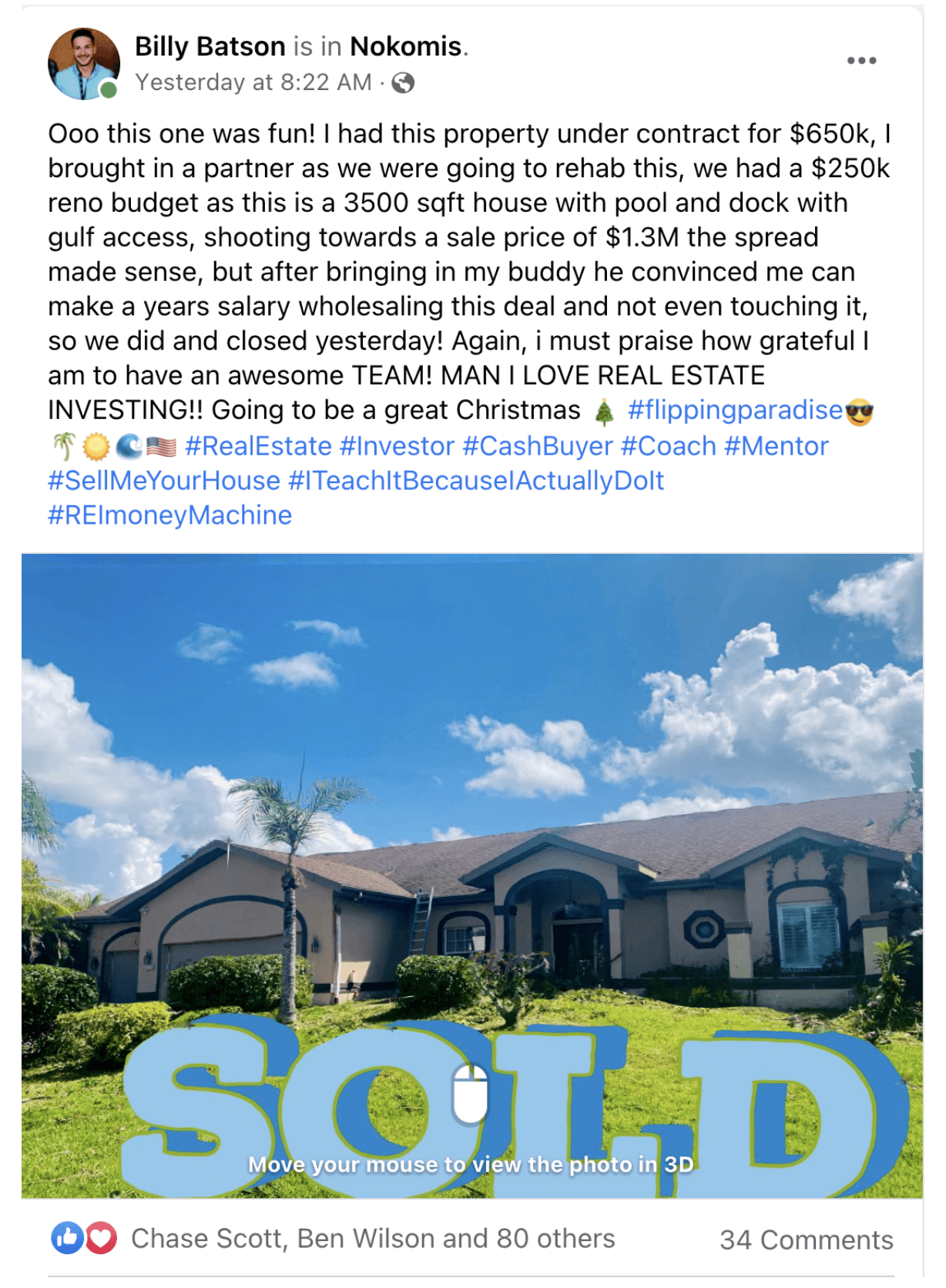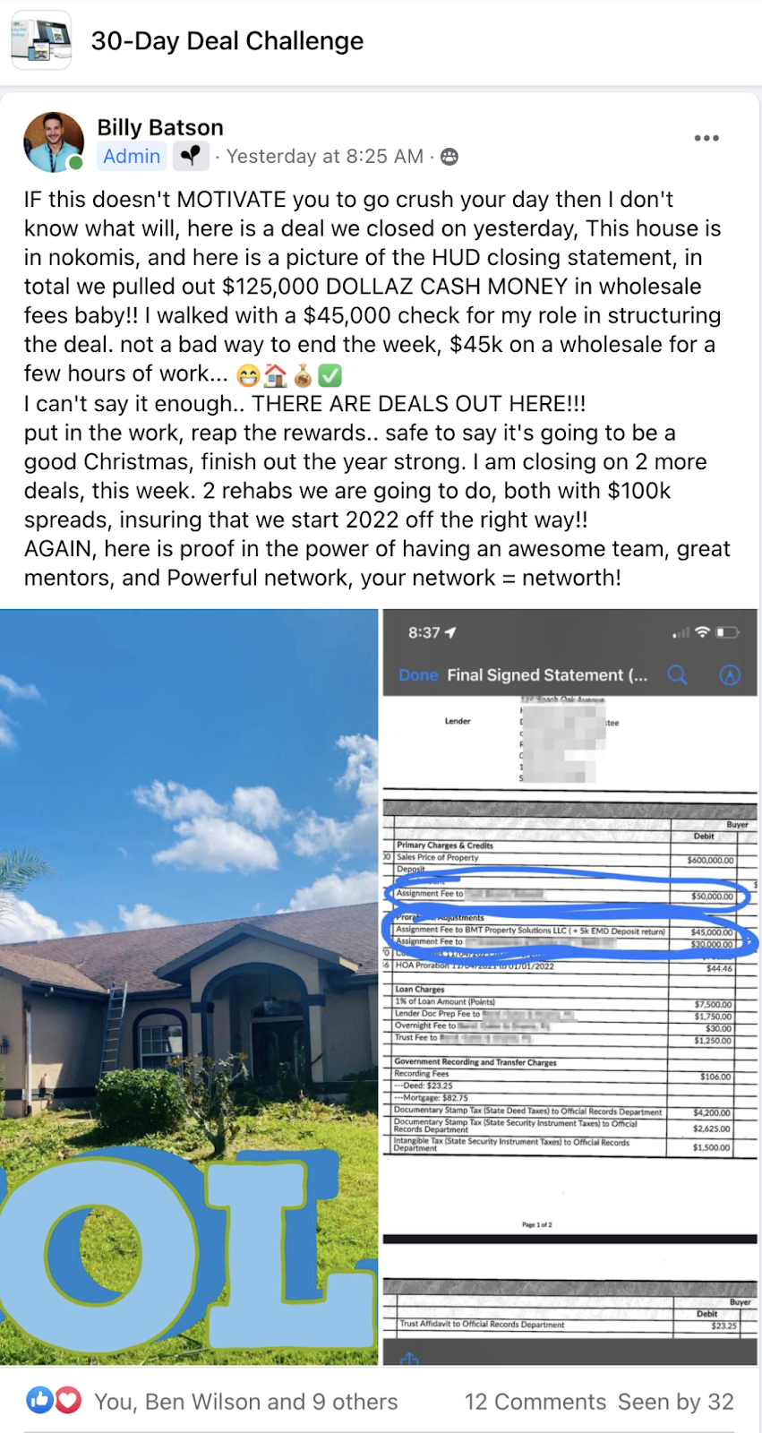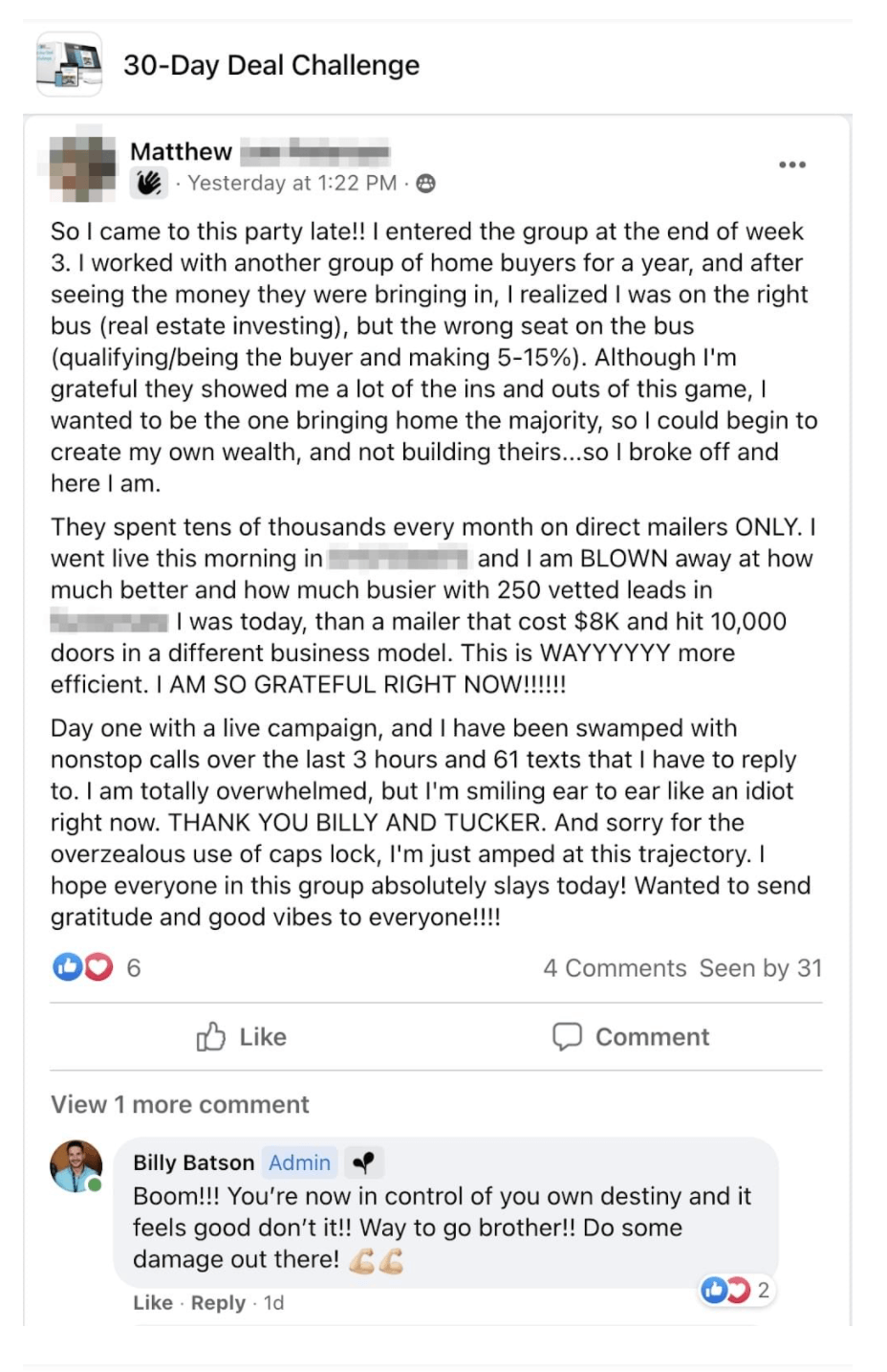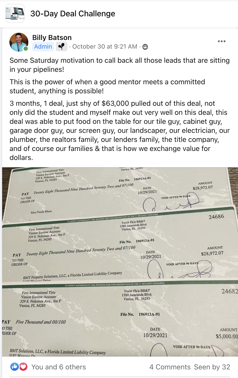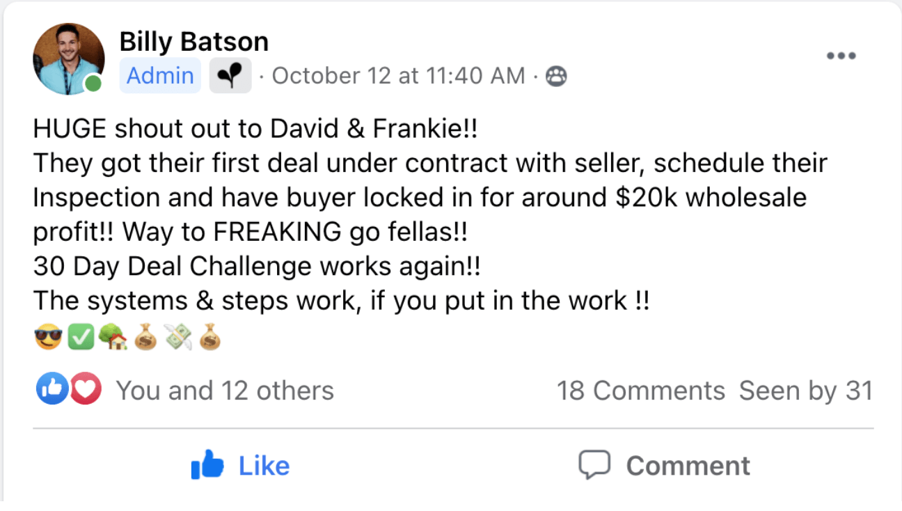 Soon After, They Got Their First Deal Under Contract With A Motivated Seller And Then I Ended Up Posting This In Our Private FB Group: